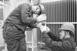 扶沟县供电公司积极组织工作人员精准开展秋检工作,进一步筑牢安全防线。图为10月11日,该公司变电检修班人员对35千伏城关变电站2号主变硅胶进行更换。刘军胜 摄