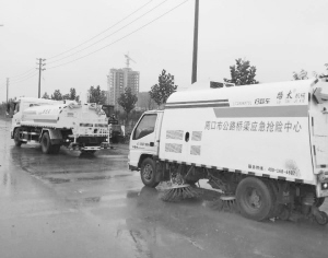 目前,创建省级文明城市进入最后冲刺阶段,连日来,周口市公路局应急抢险中心组织人员和清扫车、洒水车、铲车等设备,对责任路段武胜大道进行集中清理。王际宾 摄