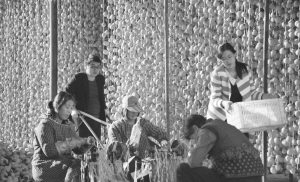 陕西富平:深秋时节柿香浓 10月29日,陕西省富平县曹村镇太白村村民将柿子削皮晾晒。日前,陕西省渭南市富平县11万亩柿子喜获丰收,当地农民抓紧将柿子采摘、晾晒,处处一片红火繁忙的景象。新华社发