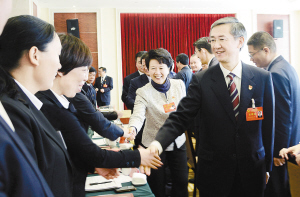 在热烈的掌声中,邓凯、赵素萍、任正晓与代表一一握手,致以亲切问候,充分肯定他们在各自岗位上为全省经济社会发展作出的突出贡献。邓凯指出,河南是一个农业大省,周口作为一个产粮大市、人口大市,在河南具有举足轻重的位置。当选党代会代表是大家的荣誉,更肩负着全省广大党员干部的重托。希望周口的代表能够以饱满的政治热情和良好的精神状态,认真履行代表职责,聚精会神讨论好报告,高度负责地做好选举工作,完成周口代表团应尽的责任,以优异成绩向党中央、全省人民交上满意的答卷。