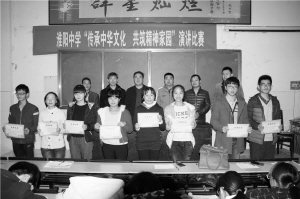 本报讯 为积极培育和践行社会主义核心价值观,落实立德树人根本任务,进一步弘扬和传承优秀传统文化,10月27日, 淮阳中学举行“传承中华文化 共筑精神家园”演讲比赛。