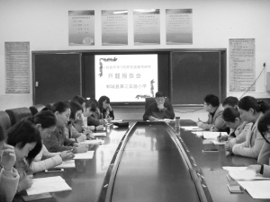 10月28日上午,郸城县第三实验小学召开2016年立项的两项市级课题开题报告会。《小学语文单元主题下的教材整合策略探究》课题组组长朱秋艳、《小学数学小组合作学习时机的实践性研究》课题组组长卢娟分别作了开题报告,并介绍了前期工作情况。徐辉 张艳艳 摄