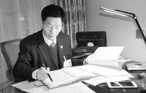 11月3日,中午休会期间,参加省十次党代会的梅根清代表在补充会议笔记。