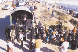 伊拉克平民逃离战乱 11月3日,伊拉克平民抵达哈兹尔营地。当日,位于摩苏尔以东25公里处的哈兹尔营地接纳了约3000名平民,是近三周来单日接纳平民数量最多的一天。联合国难民署3日说,自10月17日摩苏尔战役开始以来,已经有超过2万名平民因战乱逃离家园。新华社发