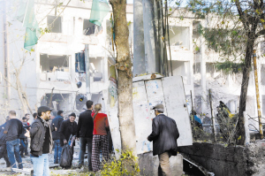 土耳其东南部发生爆炸 11月4日,在土耳其东南部迪亚巴克尔市,人们聚集在爆炸现场附近。据土耳其媒体报道,当地时间4日早上8点左右,迪亚巴克尔发生爆炸,导致至少30人受伤。据报道,本次恐怖袭击由库尔德工人党武装分子组织实施。新华社发