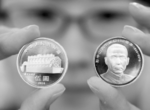 孙中山先生诞辰150周年普通纪念币开始预约兑换 11月5日,在中国建设银行北京长安支行营业部,一名工作人员在展示孙中山先生诞辰150周年普通纪念币的正反面。当日,为纪念孙中山先生诞辰150周年,中国人民银行发行的孙中山先生诞辰150周年普通纪念币开始办理预约兑换。新华社发