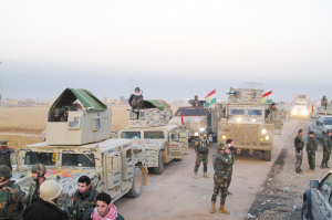 11月7日,伊拉克库尔德武装在摩苏尔东北部的巴希加镇外集结准备发动攻势。