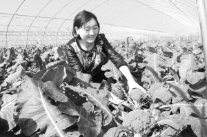 昨日,项城市范集镇曹庄村菜农赵淑霞正在钢架蔬菜大棚里采摘西兰花。近年来,该镇大力调整农业产业结构,发展特色农业,鼓励菜农大面积种植蔬菜,同时也解决了留守人员就业问题。目前,该镇种植的2000余亩大棚延秋蔬菜开始上市,成为农民增收致富的主要渠道。