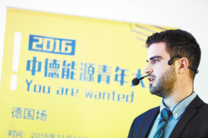 中德青年聚焦新能源发展 11月19日,来自ESCP欧洲商学院的研究生卡姆佩里斯在德国法兰克福举行的首届中德能源青年大会(德国场)上演讲。