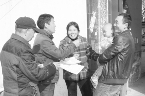 项城市孙店镇党员干部以走访群众、收集民意的方式帮助群众解决生产、生活方面的难题。入冬以来,该镇把贫困群众的冷暖挂在心上,走街串户,访民情、问民需、解民忧。图为该镇党员干部在高营村走访群众。王洁石 摄