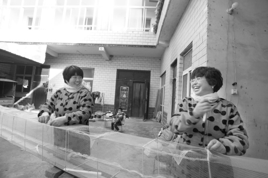 近日,商水县袁老乡李庄村一对婆媳在家里边照顾孩子,边有说有笑地编织渔网。商水县大力发展渔网编织产业,通过扶持龙头企业、成立渔网编织协会等途径,带动全县4万多名留守妇女、老人和残疾人在家门口实现了就业。刘飞 摄