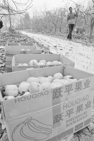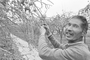 10多年前,申运良积极响应政府号召,进行农业结构调整,在自家地里种上柿子树。经过多年的辛勤培育,柿子树步入良好生长态势,年年硕果盈枝。然而,由于柿树管理、采摘等原因,柿子销路问题一直没有得到有效解决。申运良和相邻的几户村民商量,准备砍掉柿树,改种粮食。(刘俊涛 摄)