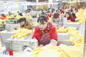 12月5日,项城市产业集聚区辉煌服饰的工人正在车间赶制订单服装。近年来,项城市扎实推进项目建设,形成了辉煌服饰、松鑫服装等28家规模以上纺织服装企业集群,有效促进了地方经济快速发展。王洁石 摄