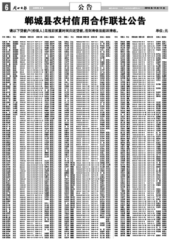 郸城县农村信用合作联社公告