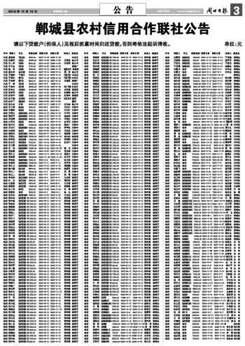 请以下贷款户(担保人)见报后抓紧时间归还贷款,否则将依法起诉清收。单位:元