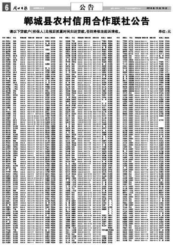 郸城县农村信用合作联社公告