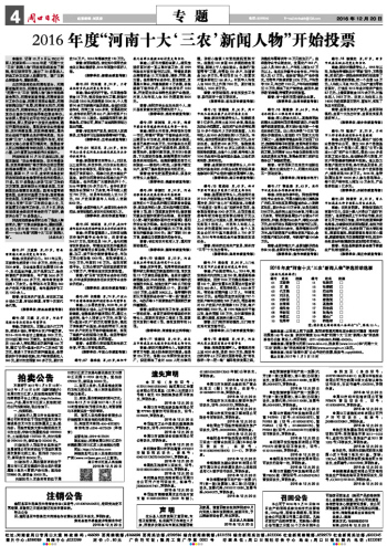 2016年度“河南十大‘三农’新闻人物”评选活动选票
