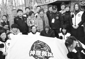 12月19日,神鹰救援联盟郸城中队在队长李小伟的带领下,来到双楼乡金庙村92岁孤寡老人吴敬全家中,为他修缮房屋,送去床、棉被、棉衣、牛奶、鸡蛋、面粉、大米等生活用品,让老人过一个温暖的冬天。图为队员们与吴敬全老人合影留念。