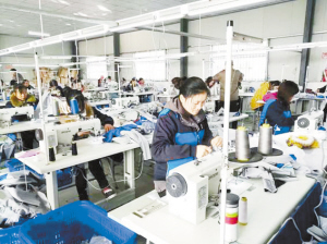 卞路口乡在精准扶贫工作中注重产业扶贫,引进服装加工企业进村办分厂,让留守妇女在家门口实现就业,带动22名贫困户增收脱贫。黄海涛 摄