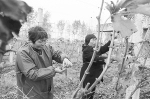 近日,几名贫困户在商水县邓城镇天力葡萄园里进行搭架管理。该镇积极探索精准扶贫新路子,按照“贫困户+基地+企业”的方式就近安排贫困群众到产业园就业,目前,300余名贫困群众实现了就业脱贫。