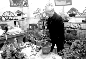昨日,市区文昌大道佳利花卉市场,一名园艺师熟练制作盆景。据了解,我国盆景艺术流派较多,由于取材不同,造型方法有别,艺术风格各异。中州盆景艺术风格与其他流派区别较大,取材以杂木类树桩为主,如三春柳、黄荆、石榴等。周口盆景作品涉及松柏类、山石类、根艺类等品种,造型古朴飘逸、潇洒自然,全面展现了周口盆景作品的特色。