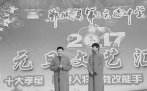 郸城县第三实验中学举行元旦联欢会暨“十大孝心学生”“十佳课改能手”“季度人物”颁奖典礼。整场活动彰显了三实中育人特色,展现了三实中师生风采,树立了三实中美好形象。张本宝 安稳 摄