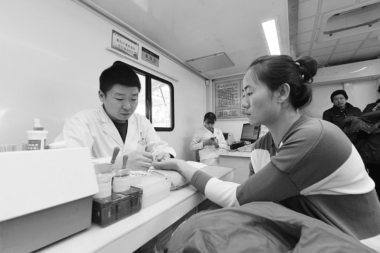 新年伊始献爱心 1月3日,银川市民在街头的无偿献血点做献血前检查。由于冬季各大医院用血量加大,宁夏血液中心O型血和A型血出现季节性库存紧张。许多市民得知这一情况后,纷纷来到银川市各大无偿献血点和献血屋献血。新华社发