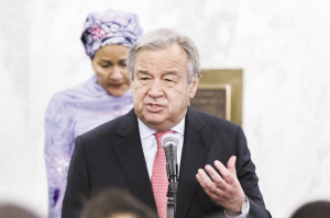 联合国新秘书长古特雷斯上任 1月3日,在位于纽约的联合国总部,联合国秘书长古特雷斯向联合国工作人员讲话。当日是联合国第九任秘书长安东尼奥·古特雷斯就任后在纽约联合国总部开始工作的第一天。新华社发