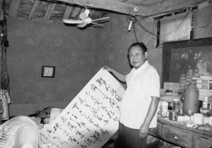 每日下班,他总收拾些牛皮水泥袋纸,带回家练字。无水泥袋纸时,他就晚上躺在被窝里用手指在被子上划,日久天长,被子常常被划破。妻子于是再给缝上一块厚厚的旧布。