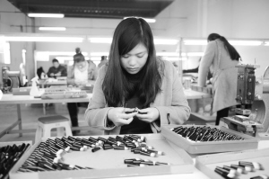 近年来,鹿邑县委、县政府积极推进尾毛产业转型升级,引导县域内尾毛企业有序进园、鼓励在外化妆刷企业回迁家乡、吸引国内知名化妆刷企业落地,着力打造“中国化妆刷之乡”,截至目前,已落地各类化妆刷企业73家,总投资8.23亿元,形成了化妆刷全链条生产线。图为鹿邑县产业集聚区明新化妆刷制作车间一角。