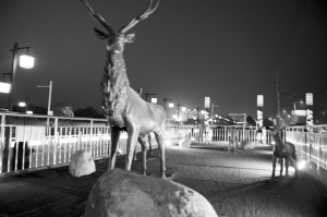 2016年,鹿邑县实施了“551155”工程建设。截至2016年年底,50个游园已全部建成并投入使用。图为栾台路护城河游园一角的夜景。