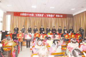 1月7日,白楼镇召开“孝顺媳妇、文明家庭”模范表彰大会,对46名“孝顺媳妇”和23个“文明家庭”先进典型进行表彰,旨在引导广大干部群众见贤思齐,形成学习模范、关爱模范、崇尚模范、争当模范的浓厚氛围。 黄河 摄