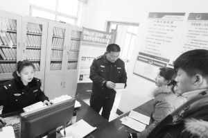 近日,商水县公安局汤庄乡派出所所长朱文杰(右一)在耐心解决群众的办证难题。朱文杰1996年从警校毕业以来,二十年如一日,扎根基层,服务群众,受到当地人民群众的一致好评。2006年他被评为“全国优秀人民警察”。 刘飞 魏红 摄