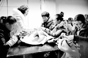昨日,扶沟县回乡创业青年段焕玲(左二)在加工点指导务工妇女进行成衣加工。段焕玲在当地妇联的帮助下,在城乡设立来料加工点20个,培训2100多名妇女掌握裁剪和缝纫技能,每名妇女利用闲散时间年可增收1万至1.4万元。