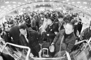 1月13日,旅客在拉萨火车站排队上车。 当日,西藏首班春运出藏列车8时50分从拉萨火车站开出。