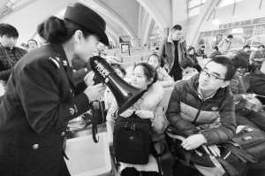 1月13日,旅客在银川火车站候车大厅候车。当日,为期40天的2017年春运正式开始。 1月13日,在宁夏银川火车站,银川铁路公安处的民警向旅客介绍春运禁止携带的各类危险品。