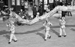 1月15日,民间文艺团体在安徽肥西三河古镇表演舞龙。当日,安徽省肥西县三河古镇举办“民俗展演迎新春”民俗文化活动,民间文艺团体表演舞龙、舞狮、闹花船等民俗节目,喜迎新春佳节。