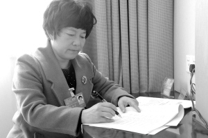 昨日中午,参加完省十二届人大七次会议开幕式的我市代表刘素英,回到驻地就开始整理资料,为讨论发言做好准备。记者 王映 摄
