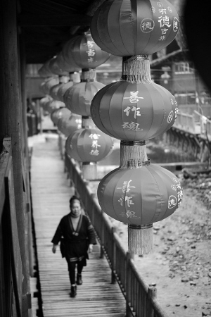 这是1月15日在贵州省剑河县观么镇巫包苗寨拍摄的印有中华传统美德内容的红灯笼。在春节即将到来之际,贵州省剑河县巫包苗寨挂起印有中华传统美德内容的大红灯笼,扮靓美丽乡村。