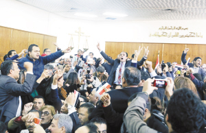 1月16日,在埃及首都开罗,人们在行政法院终审裁决“归还”沙特岛屿协议无效后欢呼庆祝。
