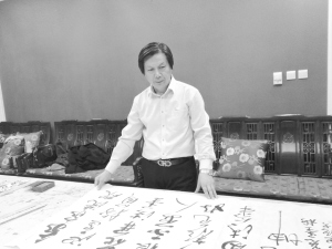 “不入迷难得奇”。唐思领对书法有着入迷的程度。今年虽60有余,但每天临帖写字不少于千字,兴致来了,右手写累了就用左手写。他并不是刻意练左手,实则写书法时一发不可收也。