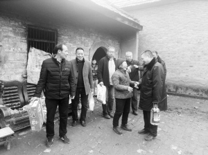 1月17日,郸城县地税局局长长王鹏飞,深入东风乡梁庄行政村贫困户家中开展送温暖慰问活动,送去了米、面、油等生活用品和慰问金,鼓励贫困户勇敢面对生活,自强自立,争取早日脱贫。 记者 卢好亮 通讯员 钱冬冬 摄