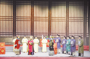 1月12日下午,河南省豫剧院一团全省优秀廉政剧目《张伯行》巡演在西华县人民会堂举行。 图为演出现场。张思 摄