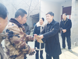 1月23日上午,区委书记郭志刚带队到城北办事处邵寨行政村慰问困难群众,为他们送去米面油和慰问金,祝愿他们度过一个美好的春节。春节前夕,区四大班子领导分别带队走访慰问弱势群体,把党和政府的关爱传递给他们。 理效明 摄