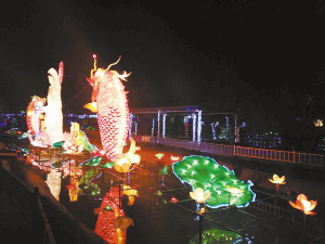 据了解,此次灯展为期一个月,灯组全部采用节能灯和LED灯光源,比传统白炽灯节电约30%。制作方将现代技术融入传统技艺,使传统彩灯焕发新的魅力。彩灯不仅数量繁多,而且造型新颖,既有代表周口文化气息的“老子出关”“女娲补天”,又有异国风情的“美丽富士山”,也有寓意鸡年大吉的“雄鸡报晓”等共计38组大型彩灯。(理效明 文/图)