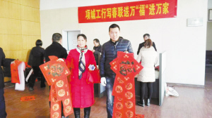 春节前夕,项城工行举行写春联送万“福”进万家活动,为群众送去新春的问候。