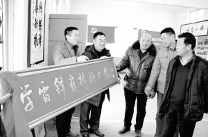 《周口日报》1月3日一版头题刊登的《“崔桥好人”传播文明扬四方》传到京城,中国书协名誉主席张海先生对扶沟县“崔桥好人”现象赞不绝口,应邀题写“学雷锋崔桥好人馆”牌匾。春节期间,来“好人馆”参观学习的人络绎不绝。图为“全国优秀志愿者”李高峰(左二)和前来参观学习的县乡领导交流学雷锋体会。 谷志方 摄