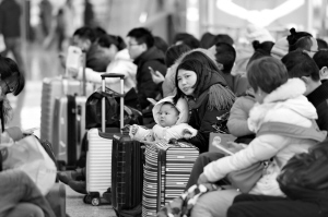 2月2日,旅客在石家庄火车站候车大厅内候车。当日是春节假期的最后一天,石家庄火车站迎来返程客流高峰,预计全站当日将发送旅客10万人次以上。