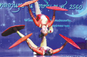 2月4日,由曼谷中国文化中心、中国安徽省文化厅共同举办的“2017安徽杂技新春演出”活动亮相泰国曼谷。图为杂技团的演员在表演转毯。