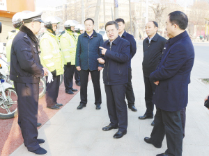 在马庄转盘路口交警执勤点,皇甫立新、刘国庆等县领导与交警们一一握手,向他们致以新年的祝福,并查看新添置的工作服和交通疏导摩托车。皇甫立新指出,一直以来,县交警大队的各位交警同志恪尽职守、早出晚归、风雨无阻,在各个交通指挥岗和十字路口疏导交通,为全县居民更加顺畅、安全的出行做出了很大贡献,成绩值得肯定。希望广大交警继续履行岗位职责,科学合理调度警力,做到依法执法、人性化执法,把沈丘交警打造成沈丘对外形象的一张靓丽名片,有效提升沈丘的知名度和美誉度。